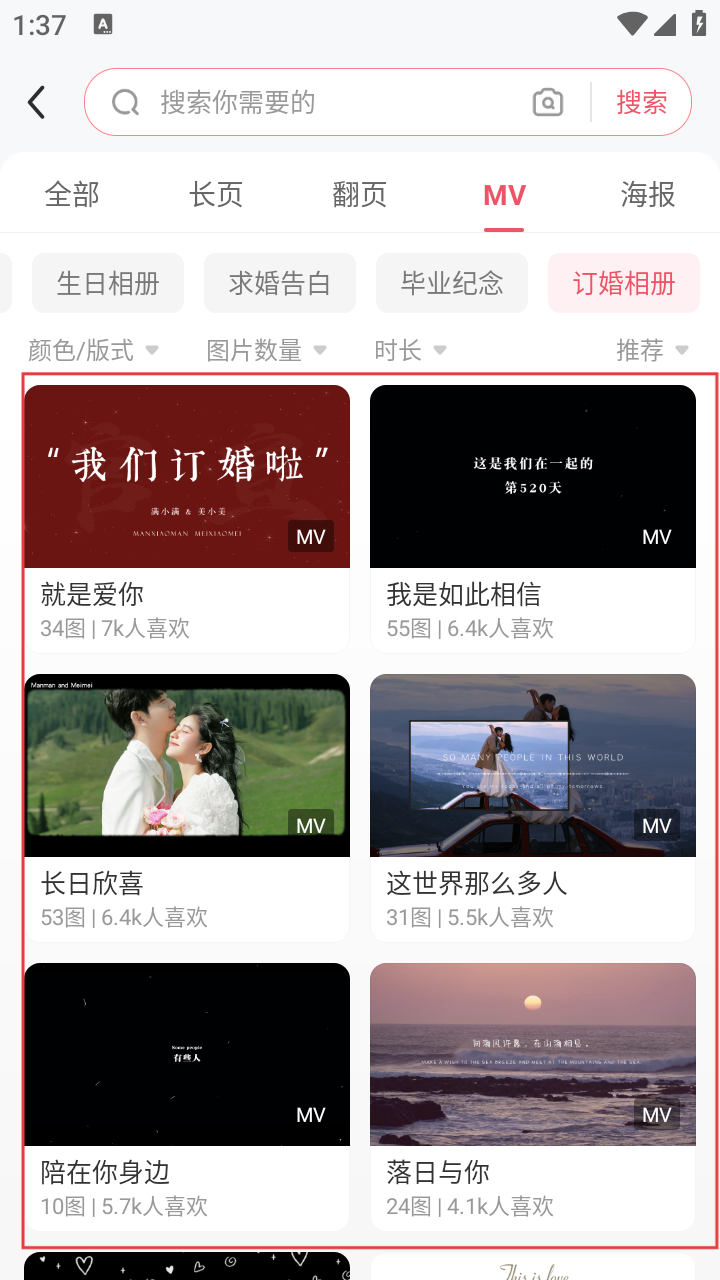 3、浏览订婚相册模板,选择喜欢的模板进入详情页。