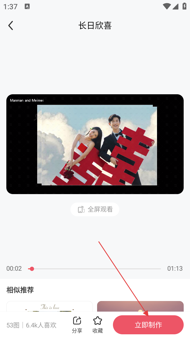 4、在模板详情页,点击【立即制作】,开始定制订婚相册。