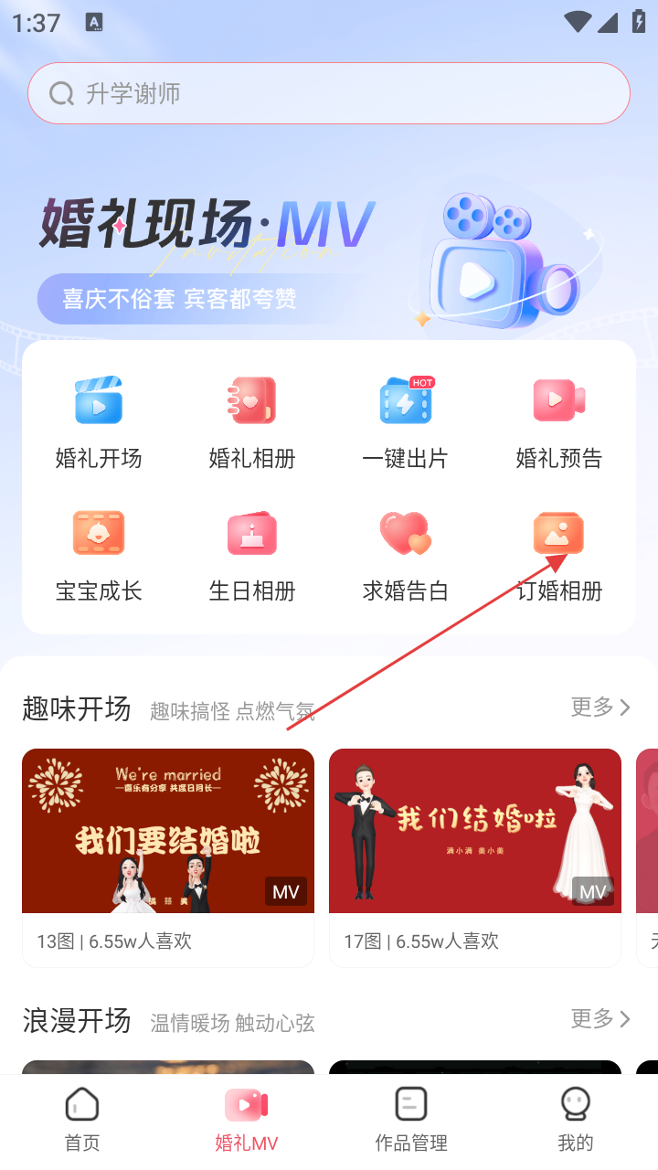 2、在婚礼MV页面,找到并点击【订婚相册】分类。