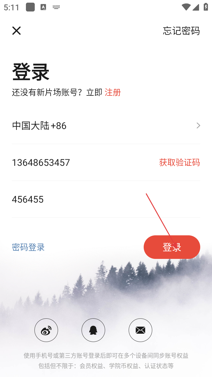 4、完成手机号和验证码输入后,点击【登录】按钮,即可完成登录操作。