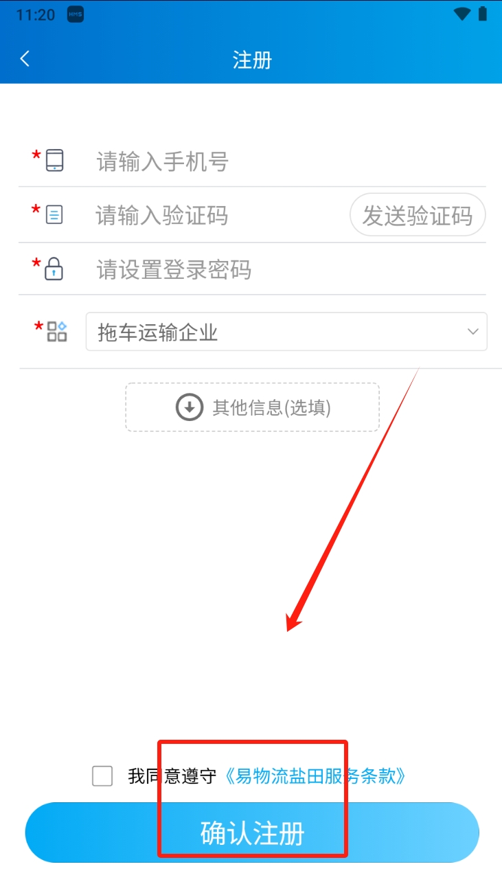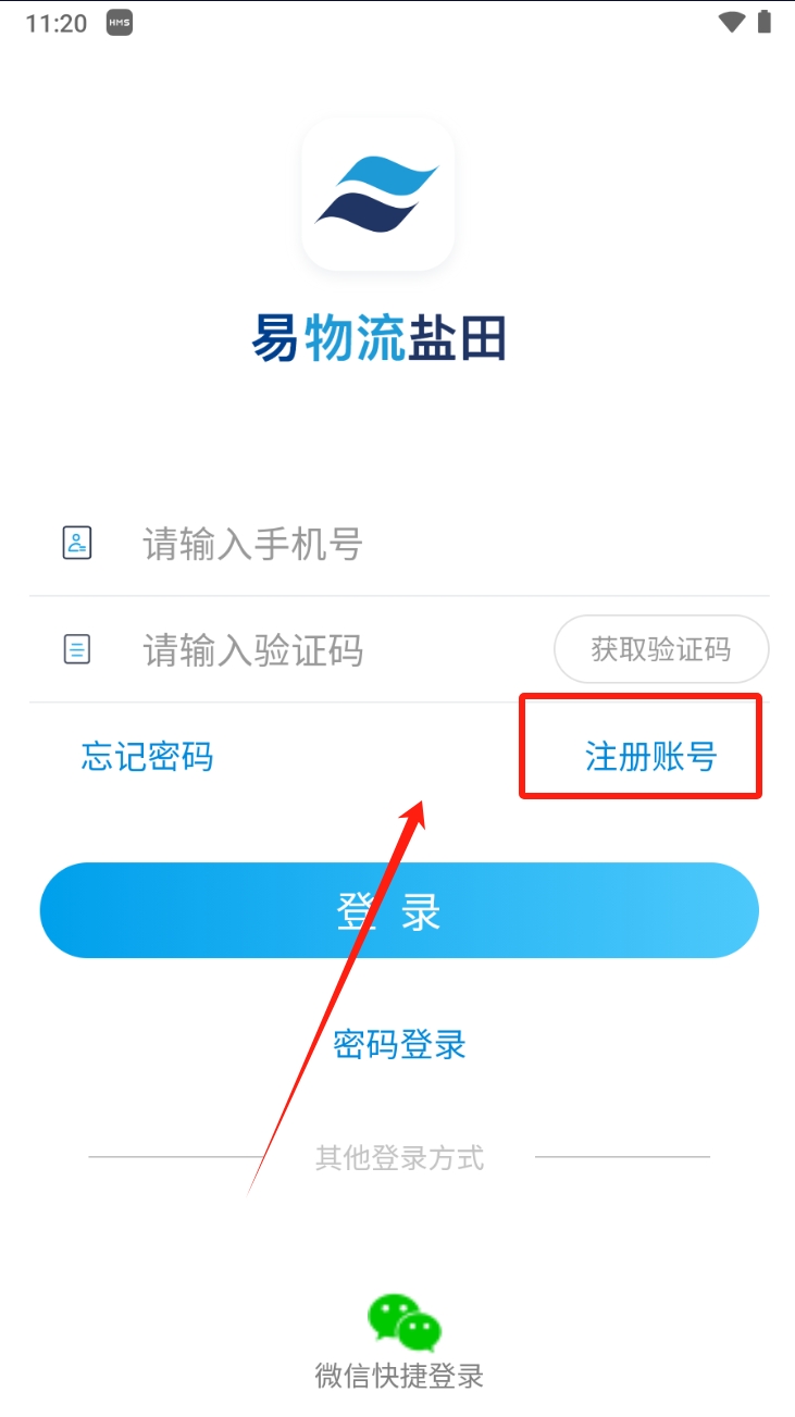 1、首先,点击注册账号。在易物流盐田的登录页面,点击“注册账号”按钮,进入账号注册流程。
