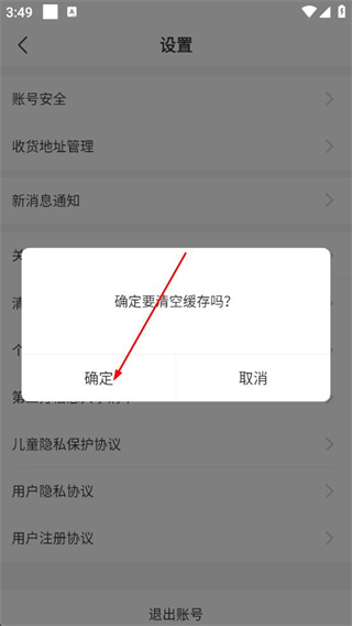 4、在清空缓存确认弹窗中,点击【确定】,可完成缓存清理,释放软件存储空间。