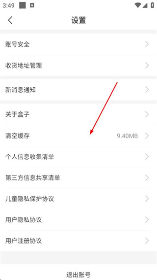 3、在设置界面,点击【清空缓存】,可进入缓存管理页面,查看缓存大小并进行清理操作。
