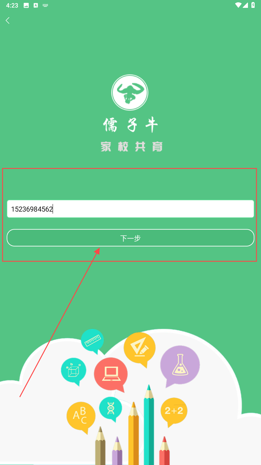 1、打开应用,填写手机号并点击【下一步】。