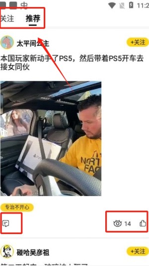 2、在推荐页面中,浏览不同的视频和帖子,点击“推荐”标签来发现更多娱乐内容。