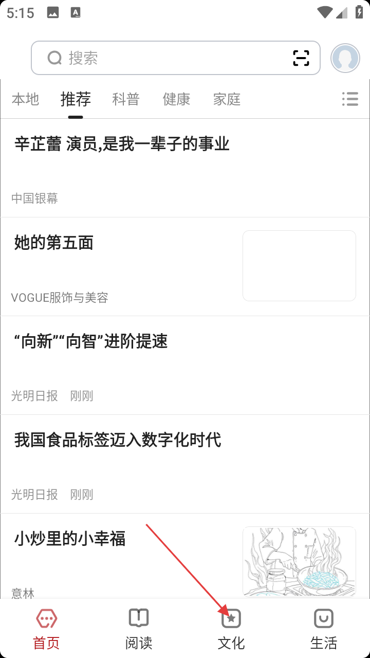 1、在首页点击底部【文化】,进入文化页面,可看到文化相关内容分类。
