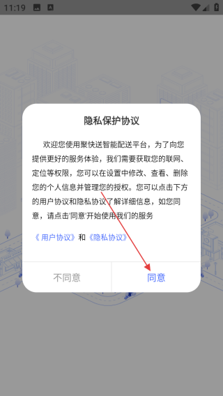 1、打开应用查看协议点击同意。