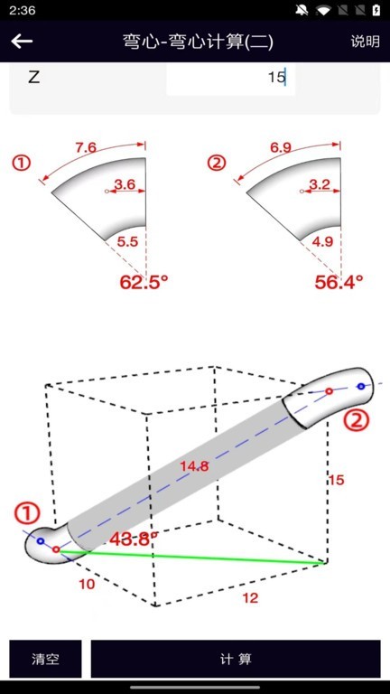 1、打开应用后选择所需计算类型,输入已知参数如管道直径、弯曲半径等,系统将自动输出计算结果。