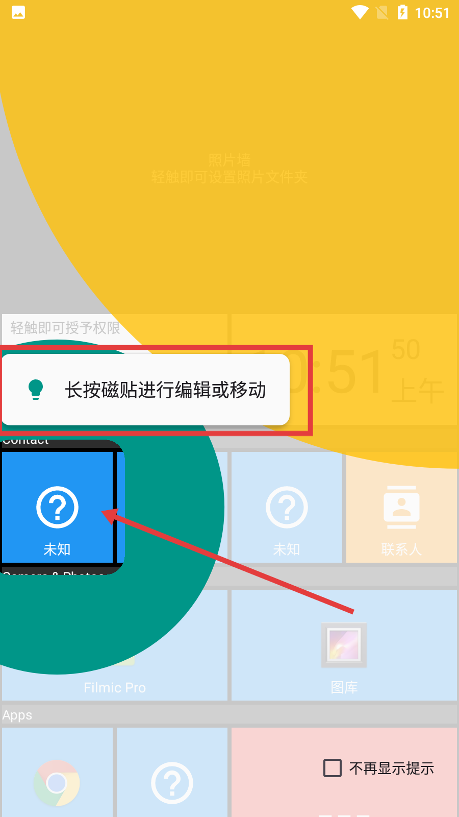 3、长按磁贴,可对其编辑或移动,调整桌面磁贴布局与内容。