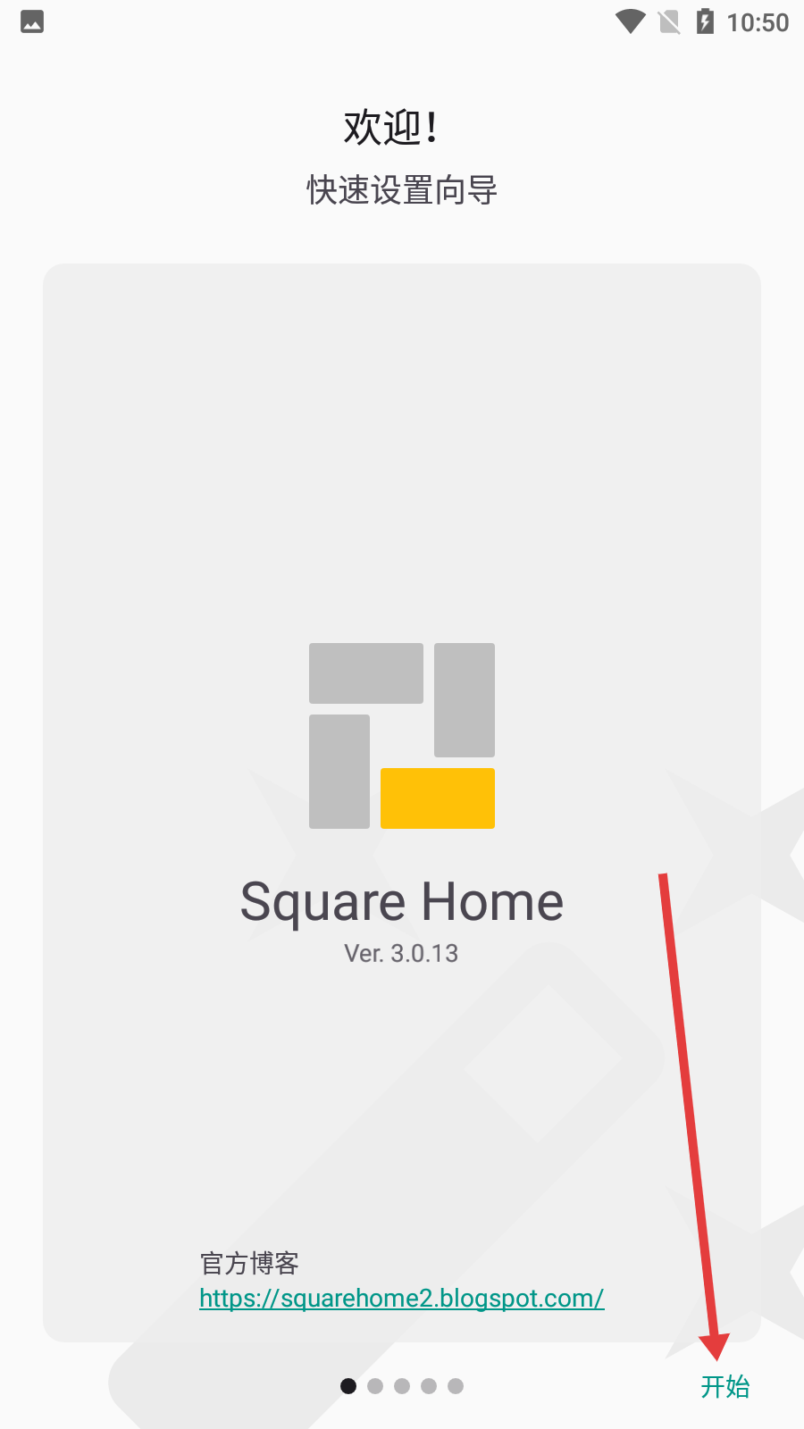 1、进入SquareHome欢迎页,点击右下角【开始】,启动快速设置向导。
