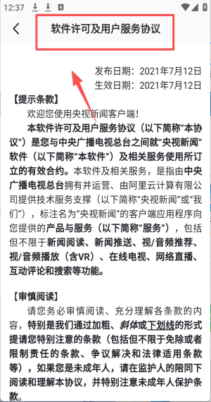 3、点击“软件许可及用户服务协议”查看详细的服务协议条款。
