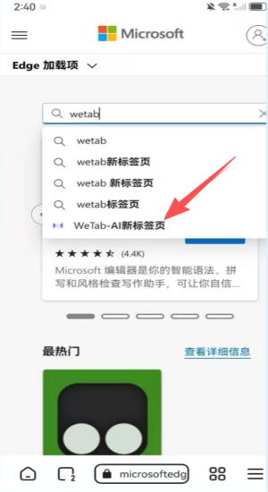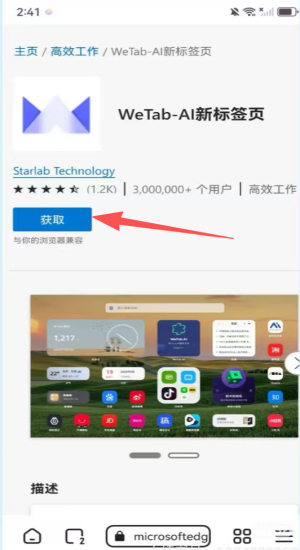 2、进入扩展商店选WeTab,点获取准备替换默认主页。
