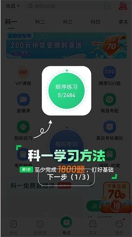 2、然后点击【顺序练习】,进入习题练习(至少完成1800题,打好学习基础)。