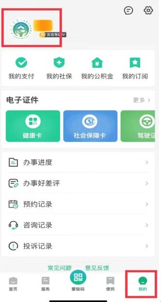 3、实名认证,登录后,在下方功能栏中点击【我的】,然后点击页面左上角【头像】进行实名认证。