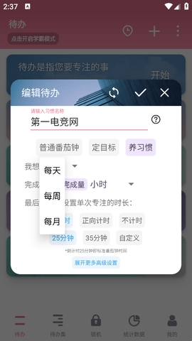 2、使用番茄ToDo开启学霸模式,每天按照计划学习,一点点的提升,成为学霸。