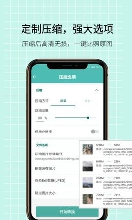 图片压缩王可以根据压缩的质量和大小两个项去调节,并且在压缩前,开启“保持分辨率”,可以让图片更加清晰。