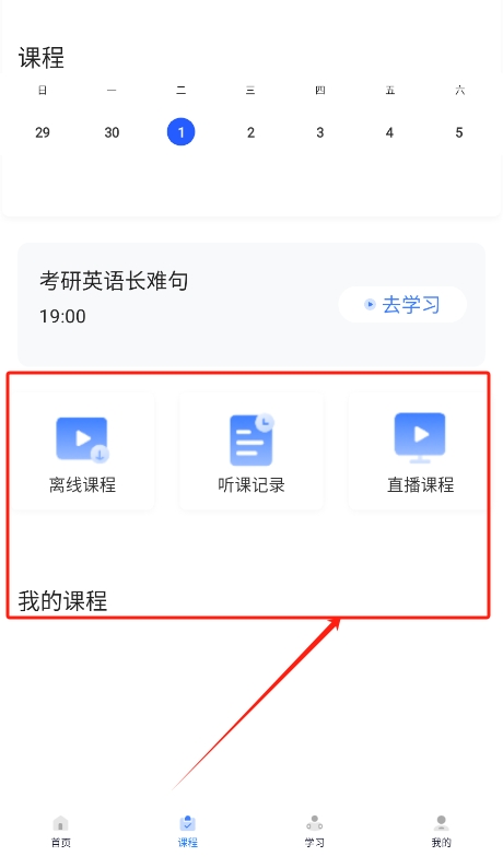 2、进入主界面后,选择学习计划,查看各类复习资料,并根据个人需求安排在线学习时间,稳步推进备考进程。
