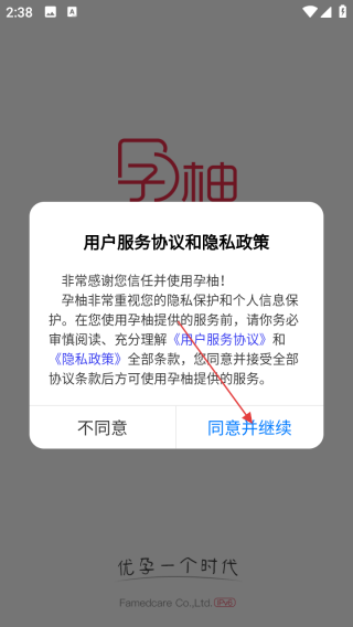1、打开应用查看协议点击同意并继续。