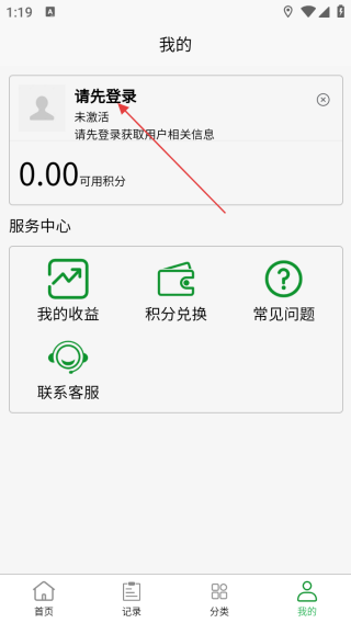 2、在我的界面点击登录。