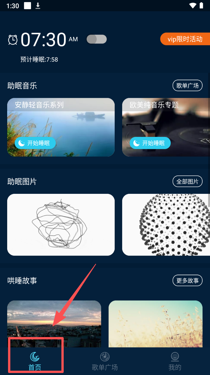 2、在助眠音乐页面,点击“开始睡眠”按钮开始播放音乐。