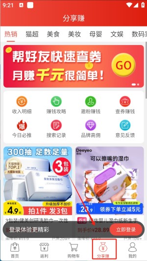 2、品牌特卖专区收录官方旗舰店折扣商品,提供独家加码返利,大牌商品低价入手不再是奢望。