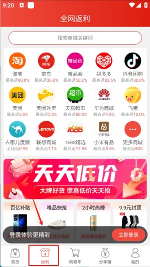 1、高额返利机制覆盖全网主流电商平台,商品返利比例最高可达90%,智能比价系统自动筛选最优折扣方案,确保用户享受真实优惠。
