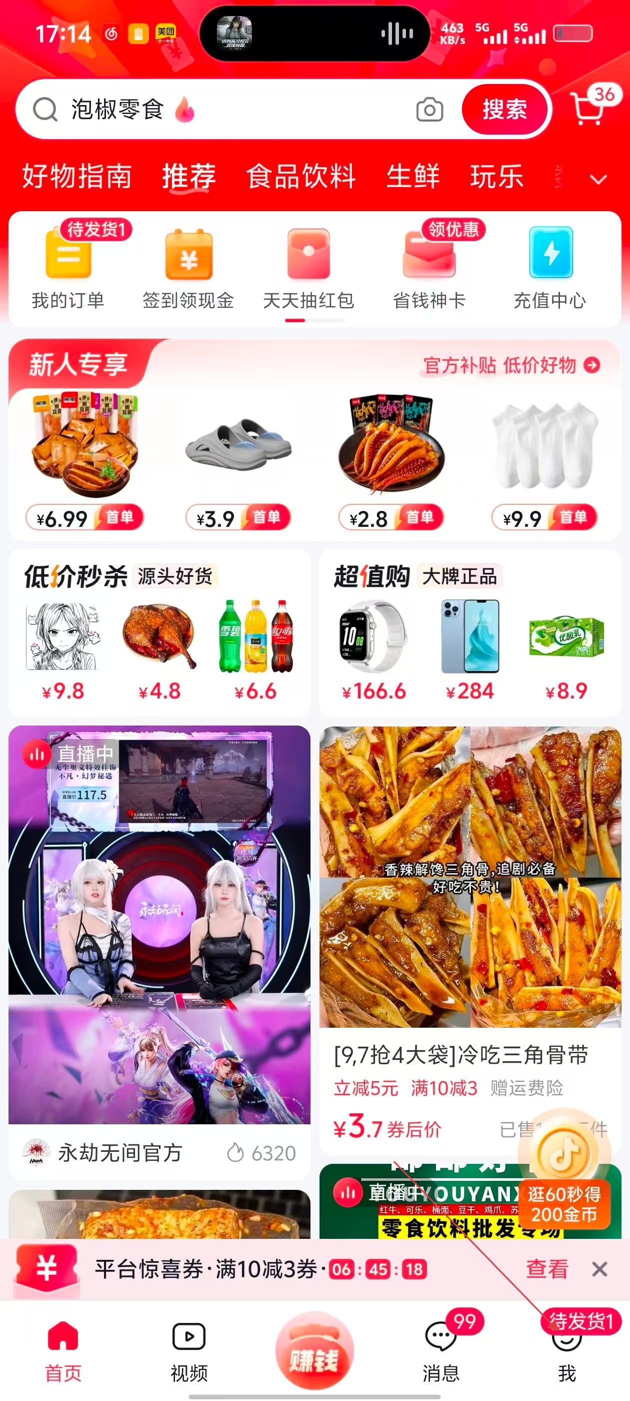 5.增加了直播带货功能。