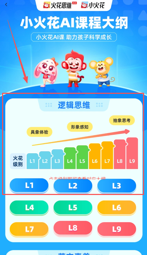 2、接下来,用户可根据孩子的年龄和兴趣选择适合的启蒙课程,系统会推荐相应的学习内容供选择。