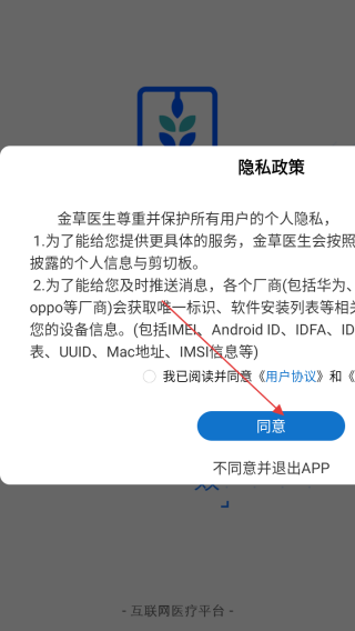 1、打开应用查看协议点击同意。
