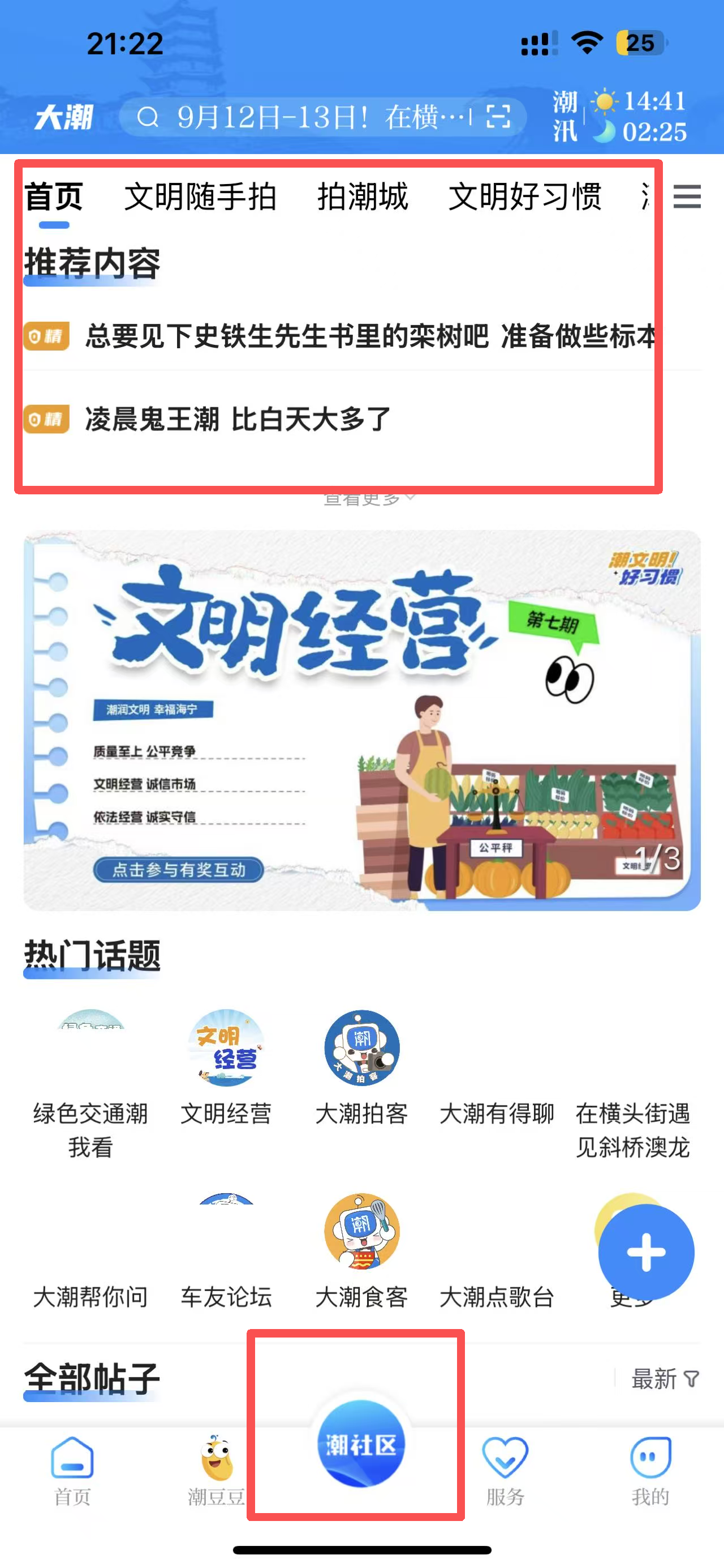 3、点击“潮社区”图标,进入社区参与互动和讨论。