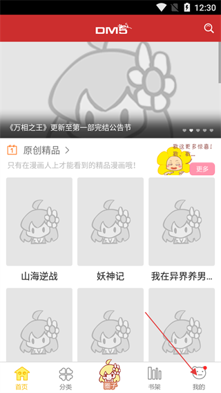 1、进入软件后,可在首页浏览原创精品漫画,也可点击底部【我的】进入个人中心。