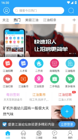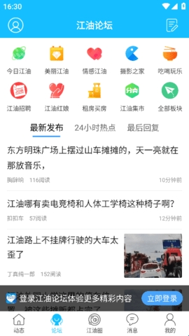 江油论坛是一款专为江油市本地人打造的论坛资讯软件,外地人想玩转本地吃喝玩乐就来江油论坛app,这款软件能快速带你了解江油市这座城市,本地人想社交或者有任何问题,也可以来这里,随时发帖询问,随时与论坛上的网友在线交流,去聊一聊你们之间感兴趣的话题。