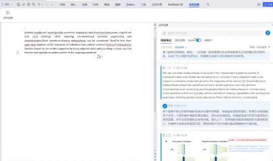 3、笔记查看与写作“边写边搜”可以直接集成到WPS和office里,点击边写边搜可以直接查看边写边搜里所摘录的笔记,也可以直接查看文献进行引用等,可以让我们写作时边写边查看非常方便。