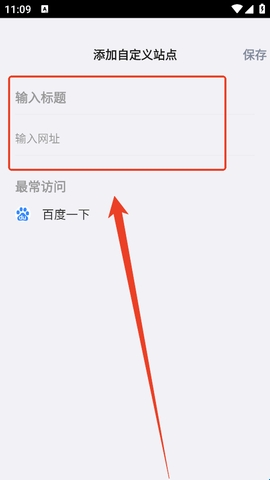 6、例如:添加自定义网址,输入标题以及网址,点击保存。