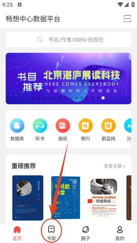 1、我们进入软件后,点击下方的“书架”。