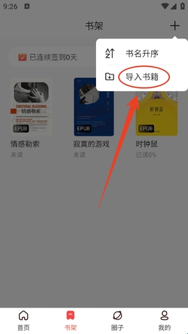3、选择弹窗中的“导入书籍”。