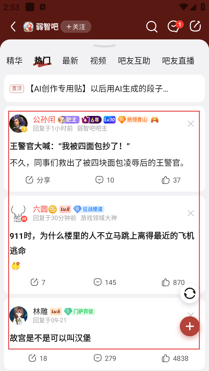 3、进入该吧页面,可浏览吧内的精华、热门等各类帖子。