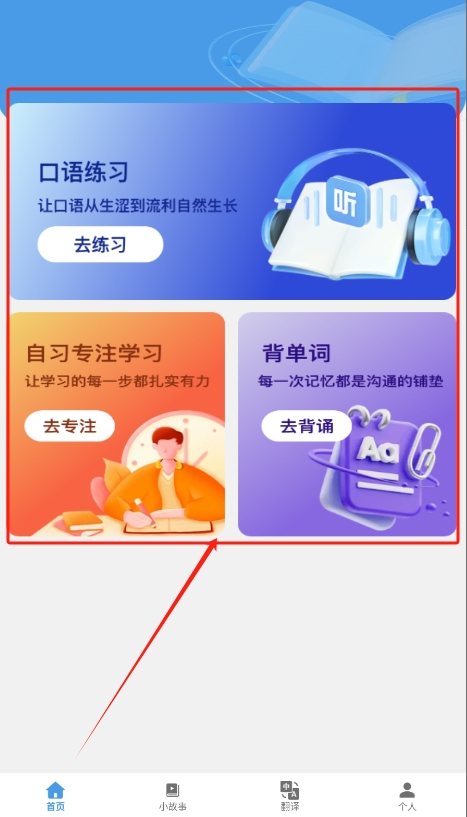 2、在主页面选择你感兴趣的学习模块,例如口语训练或词典翻译,轻松获取相关功能。