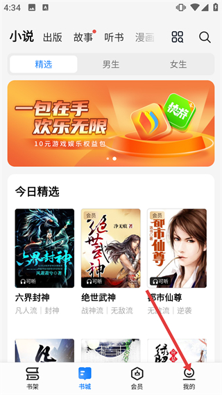 1、在书城页面,点击底部“我的”选项,进入包含阅读时长、我的书籍等功能的个人中心页面。