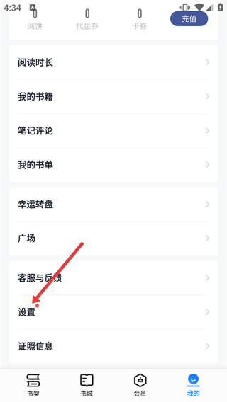 2、在个人中心页面,找到“设置”选项并点击,进入涵盖账号安全、阅读设置等选项的设置界面。