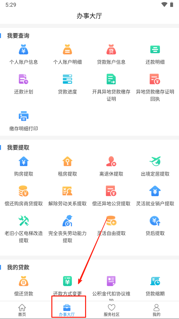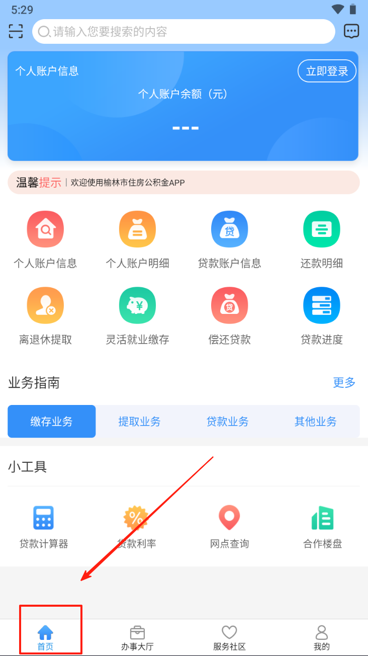 4、访问服务社区。点击底部“服务社区”图标,获取更多政策和服务信息。