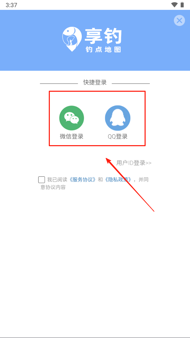 4、选择微信或QQ快捷登录,或点击“用户ID登录”进行登录。