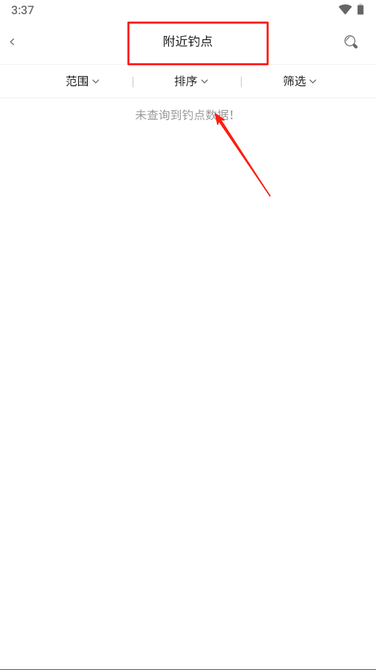 3、在搜索框中输入“附近钓点”搜索附近的钓点。