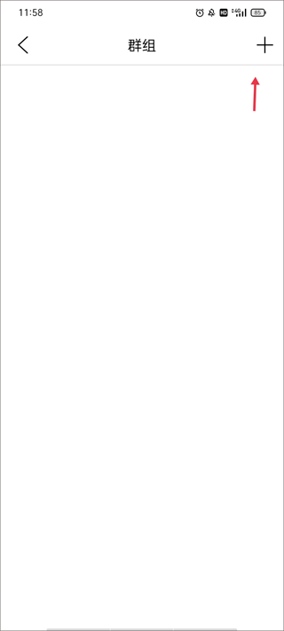 2、这里会显示你创建后加入的群组列表信息,点击“+”。