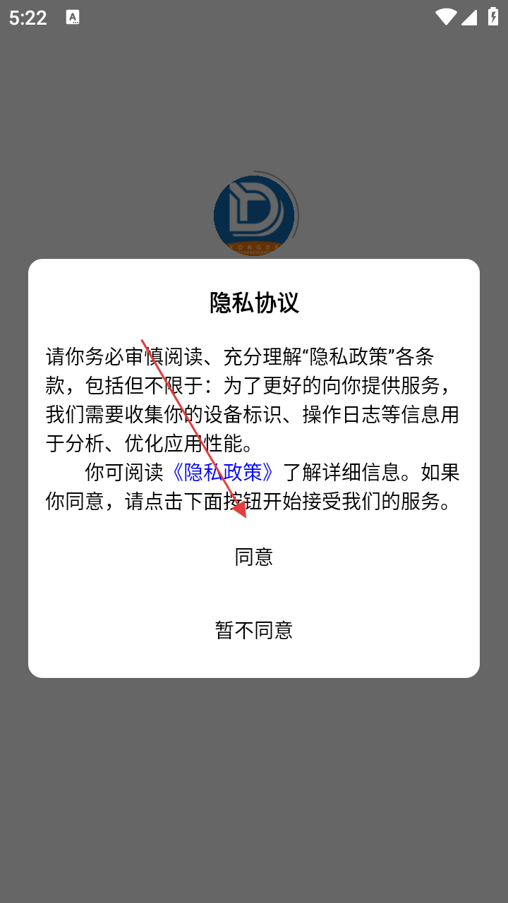 1、打开永德同城生活商家,点击【同意】隐私协议。