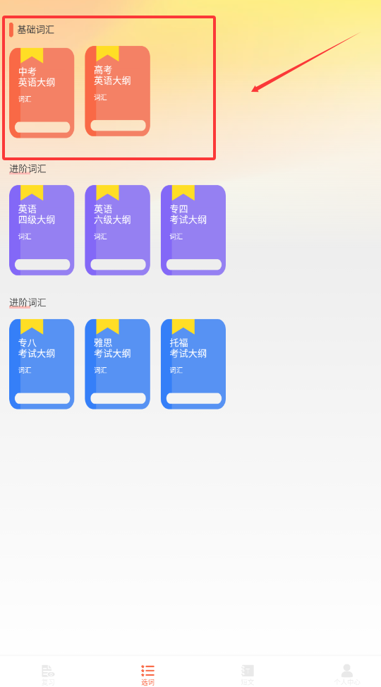 1、首先,打开后即可进入主界面,选择所需的学习模块,系统化地进行英语知识的学习。