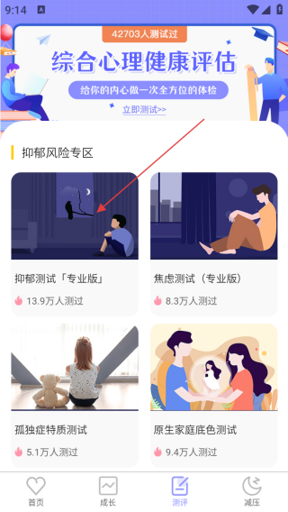3、多元化测试体系:涵盖抑郁、焦虑等专业测评及职场、情感等趣味测试,满足不同用户需求,全方位了解自我心理特征。
