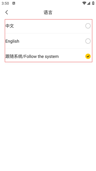 4、在语言设置页面,可根据需求选择【中文】【English】或保持【跟随系统/Follow-the-system】,点击对应选项即可完成语言切换。