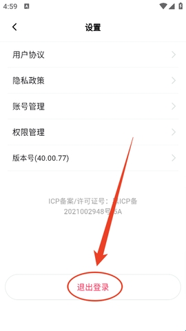 2、然后在设置页中点击“退出登录”。