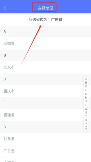 2、点击“选择地区”按钮,选择您所在的地区,选择正确的地区可以帮助符合当地要求的考试信息和题库。